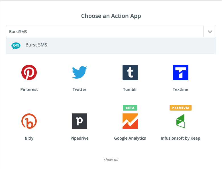 Step 8: in the search box type “BurstSMS” and select it.